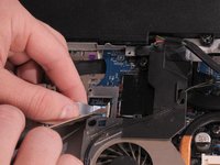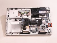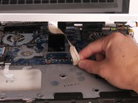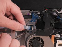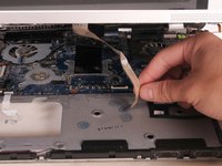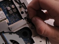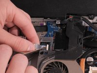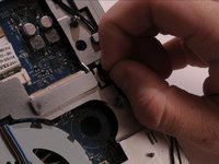 Gently pull the white connector shown in the picture towards you to disconnect it from the system board.