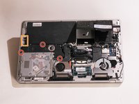 Remove the four 3.7mm Phillips screws that hold the hard drive onto the computer.