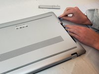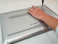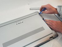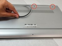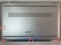 Use the T5 Torx Screwdriver and remove the four visible 6.5mm screws on the bottom of the laptop.