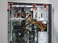Remove the side panel by sliding it towards the back of the desktop and pulling up on it as shown.