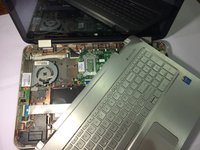 Once all of the screws have come out, flip the laptop over and open the lid so that the keyboard is face up.