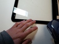 Using a heat gun, carefully loosen the adhesive connecting the digitizer to its plastic border.