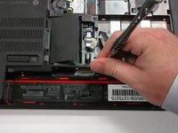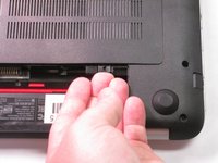 Pry the accessory plate up from the back of the laptop by applying force upwards where the screw was removed.