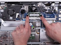 Steps 3 and 4 require you to remove the battery from your device before removing the RAM from the motherboard. Before beginning the replacement process, make sure that your laptop is disconnected from any outlet or power source, and that it is completely turned off.