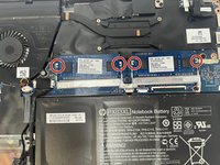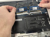 • Identify the location of the RAM in the right-hand side of the laptop. For this device, it will be located above the battery.