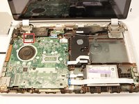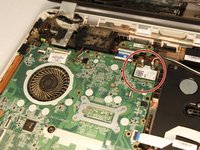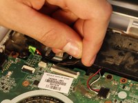 With tweezers in hand, begin by disengaging the tab on the upper left corner of the motherboard. Using your fingers, disconnect the plug that is to the left of the tab.