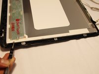 With the two panels now separated, you can see the other two strips towards the back of the computer. With finger, carefully release each strip from the locking tab.