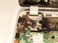 Using a JIS #00 screwdriver, remove the screws holding the hinges in place.