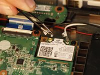 Using tweezers, gently remove the two cables connected to the WLAN module.