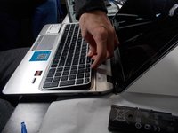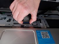Insert a plastic opening tool into the keyboard release holes on the inside of the battery area.