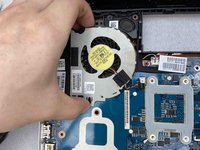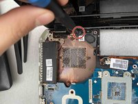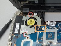 Remove the two screws holding the cooling fan down with a Phillips #1 screwdriver.