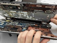 Lift up the locking tab of the ZIF connector and remove the keyboard backlight cable.