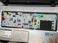 Disconnect Touch Pad button board cable using a pair tweezers.