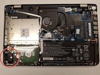 Unplug the SATA cable from the motherboard (covered in the teardown for the battery).