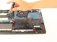Use a Phillips #1 screwdriver (PH1) to remove the seven 4mm screws indicated by the gray arrows on the battery.