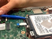 Insert the plastic opening tool in between the keyboard plate and the base of laptop.
