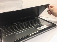 Move the plastic opening tool along the seem while prying up to separate the display housing from the laptop cover.