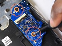 Using a Phillips #0 screwdriver, remove the two 4mm screws on holding down the SD card daughterboard.