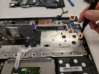 Use the Phillips #00 screw driver head to remove the three 3.3mm screw that secure the connector board to the keyboard/top cover then remove the connector board.