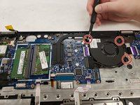 Use the Phillips #00 screw driver head to remove the three 4.6mm screws that secure the fan to the top cover.