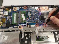 Use the Phillips #00 screw driver head to remove the following screws that secure the motherboard to the top cover: