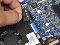 • Disconnect the port of the fan by flipping the black tab with the small blue plastic opening tool.