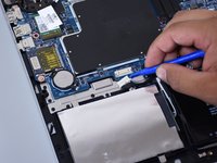 • Disconnect the battery port from the motherboard by gently lifting it on both sides with the plastic opening tool.