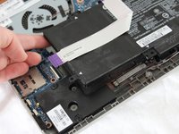 Lift the keyboard until you can see the cables connected to the motherboard.