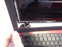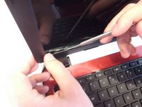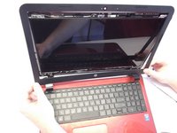Pull the screen away from the plastic backing there will be a plug on the bottom section of the screen near the keyboard.