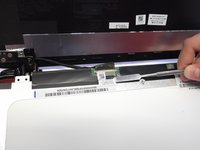 Take small metal spudger and gently scrape up the sticker holding the screen in place.