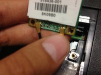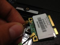 Pull carefully both cables from the Wi-Fi card, it requires a little strength