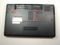 Locate the three Phillips head screws on the compartment with the wifi and keyboard logos.