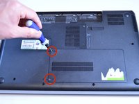 Locate the two Phillips head retaining screws which secure the hard drive compartment.
