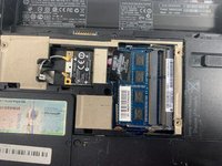 Carefully pull the panel off of the back of the laptop to reveal the RAM sticks.