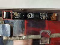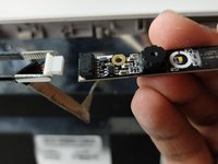 Gently unfasten the 6 tabs that hold the webcam cable in place.