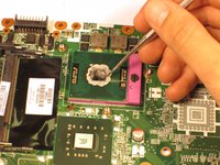 Use a Phillips #0 screwdriver to loosen the three screws attaching the heatsink to the motherboard.