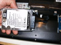 To work on this laptop, or any other device, it is important to shut down the computer. If you are unsure whether the computer is off or in Hibernation, turn on the computer, and then shut it down through the operating system. Disconnect all external devices connected to the computer. Disconnect the power from the computer by first disconnecting the power cord from the AC outlet and then disconnecting the AC adapter from the computer. The failed hard drive is easy to remove and there are no hidden screws or tabs.