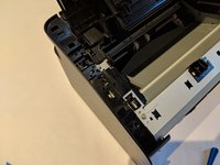 Using the plastic spudger, remove the button housing from the top left of printer.
