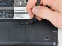Before proceeding, slide the right battery release latch to the unlocked position nearest the center of the computer.