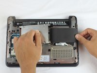 Remove the four screws holding down the hard drive using a Phillips #1 screwdriver.