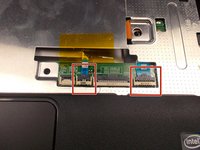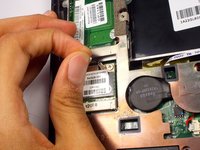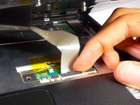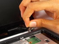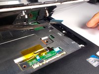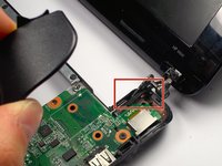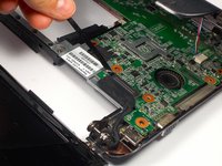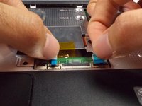 • Remove the display cable from the motherboard located on the top left corner under where the keyboard was by pulling on the black tab.