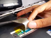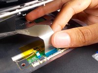 • Under the screen, peel off the tape near the cable completely, so you can see the socket for the cable.