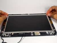 • This may be difficult to come off. Tilt the screen back and forth to help loosen the piece.