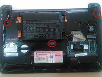 Remove the three screws (circled in red) that hold the keyboard