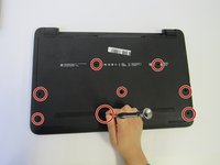 Flip the laptop over so the battery is exposed which will be next to the hinges on the top left and right.