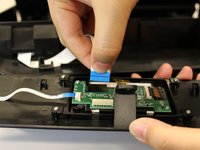 Remove the connector that is attached to the screen's circuit board by pinching the blue part of the connector with two fingers and pulling it away from the circuit board.