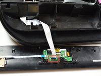 Remove the connector that is attached to the screen's circuit board by pinching the blue part of the connector with two fingers and pulling it away from button circuit board.