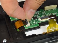Remove the connector that is attached to the screen's circuit board by pinching the blue part of the connector with two fingers and pulling it away from the circuit board.