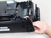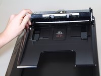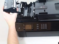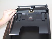Remove the wire cover and pull the wire away from the printer. The fax feeder head is now free to be separated from the printer.