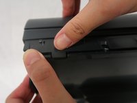 Insert 2 fingers in the dent on the right side of the printer and pull towards the front of the printer.
